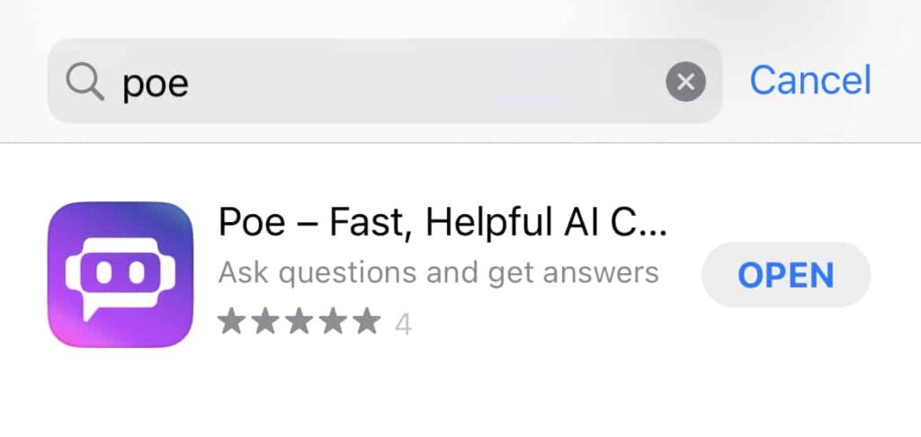 只要你有蘋果手機,在AppStore搜尋「Poe」(全名為Poe – Fast,Helpful AI Chat)並免費下載。